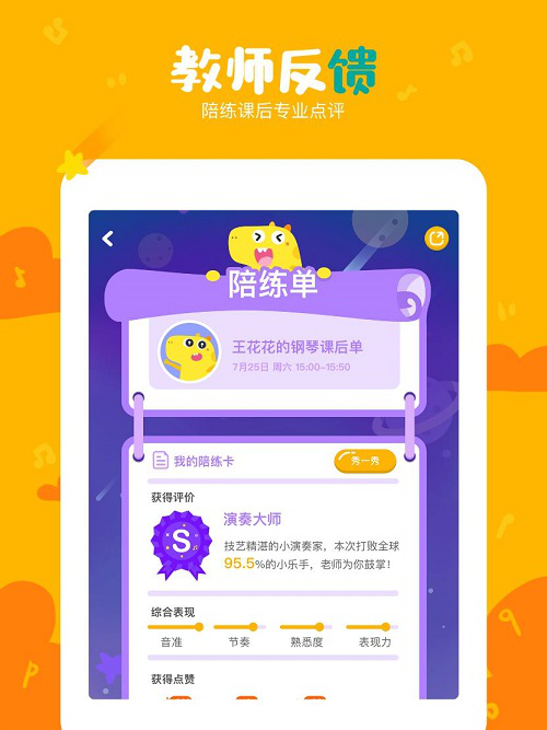 据了解,该款APP的推出,旨在通过前段产品功能、界面的迭代到后端陪练服务的强力保障,全面升级用户体验,让练琴变得更有趣,在提高孩子学习兴趣和效率的同时,缓解家长的教育压力,维护家长的消费权益。