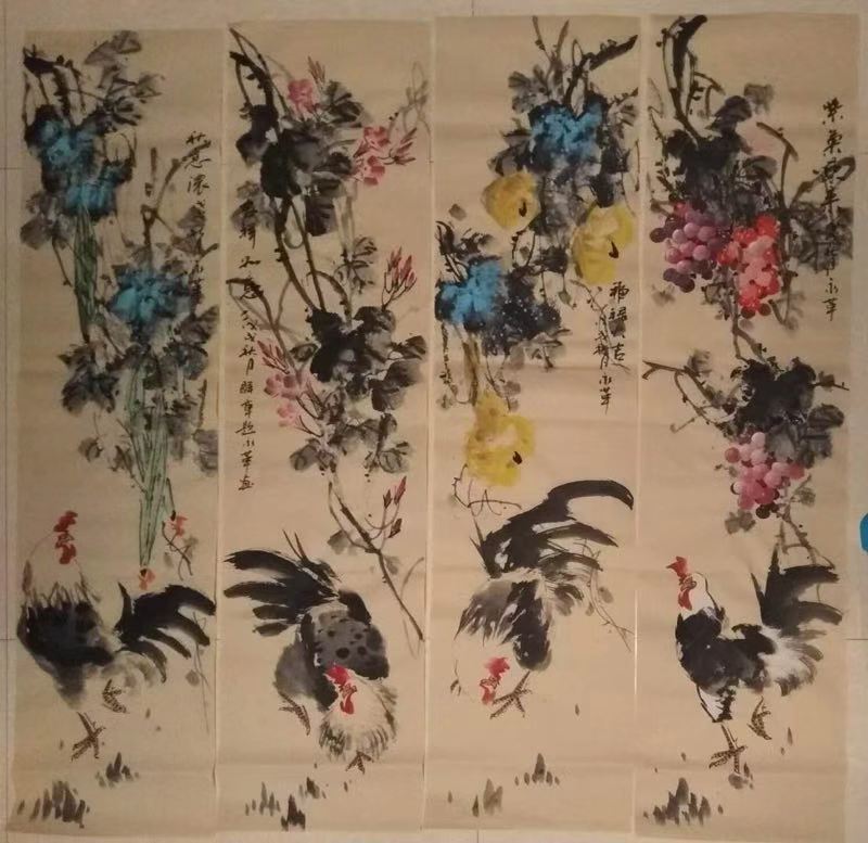 自古以来人们把鸡作为吉祥之象征。古人曰:“鸡者即吉也”鸡代表着五德精神。姚永革为画准确鸡的动态,经常观察鸡的形态、姿式。她融入了感情、笔下画出了动、静各异、有仰首高昂、雄浑豪放等等、一只只栩栩如生。在创作过程中,她观察和深谙鸡的习性及各种神态、雄浑豪放个性张扬的形态尽情入画,她观察鸡的形态、潜移默化、融会贯通,墨浓纸素,笔墨表现得畅达详尽。理解顿悟,使姚永革泼彩更加潇潇洒洒,她把鸡品、鸡韵、鸡魂、“气冲交漠,与神为佳”,做到了巧夺天工。更具有东方艺术美感色彩,融汇特有的博大精深的气韵。