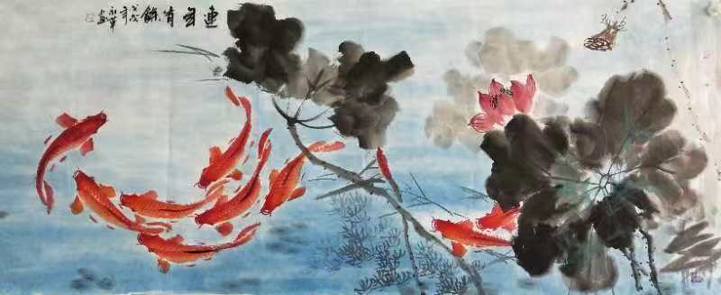 有人说:"越是简单的,也是最难的。"这句话不无道理。大写意是以简为美,有简达练,姚永革的写意红鲤魚和黑鲤魚,落笔准确而有墨色语言。表现出主题内容要素,从中品味出丰富的内涵。她画的鲤魚身姿娇嬈,个性独到,长尾善舞,优美空灵,腾跃翻扑,乐中嬉戏,一亲一疏, 一近一远,一上一下,交汇畅游,自由安祥,动态万千,無不展现出和谐、吉祥、富贵的主题。体现了时代精神和美好祝愿,如富贵有(鱼)年年有(魚),鱼跃龙门等等。姚永革用大写意的手法让人们去追求安康详和,同时也诠释着人们向往和谐和吉庆有(魚),用红与黑的色彩语言,恢弘流畅,独树一帜。