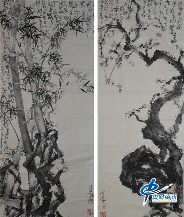 宋人词意竹梅图(250CM*80CM)两幅
