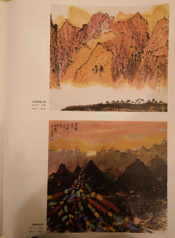 援藏期间,容铁身兼西藏自治区文化厅副厅长,深入雪域高原,深扎藏区生活,虔诚仰望,心静如水。同时,雄伟瑰丽的雪域土地滋养着他,不断丰富着他的绘画风格,拓展了他的绘画意境,他用真挚的艺术创作,描绘心中所热爱的这片神奇土地。在他水墨世界里,通过简练的笔意线条和丰富的色彩搭配,以“水墨光晕”手法,淋漓尽致地展现出雪域高原的水墨雄姿。