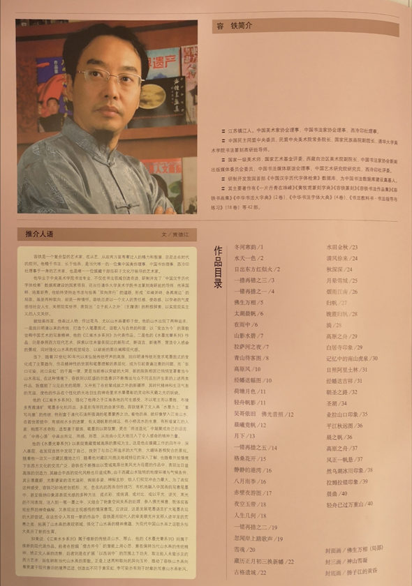 容铁先生现为中国美术家协会理事,中国书法家协会理事,西泠印社理事,国家一级美术师,中国书法数据库建设奠基人,国家民族画院副院长,他为艺四十余载,坚持从中华优秀传统文化中汲取营养,绘画师从吴冠中先生,根植传统水墨创作技法,并融合当代绘画审美趣味,尊重和遵循文艺规律的同时又师古革新,大胆探索水墨构成,将时空感和光影融于水墨画中,开创以超现实的“水墨光晕”绘画风格,形成了独特的绘画语言,展现出其极为强烈的个性化表达,开拓了中国水墨画山水新意境。