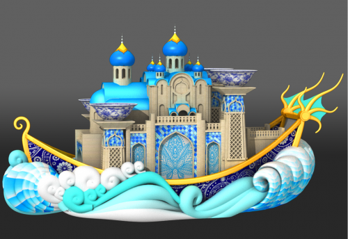 (第二届三亚国际音乐节“丝路情长”花车设计图)