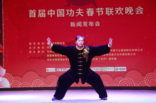 今天是2018年12月15日我们在东方梅地亚M剧场举行2019年首届中国功夫春节联欢晚会新闻发布会,首届中国功夫春节联欢晚会拟将于2019年1月19日在河南嵩山少林禅宗音乐大典演艺场拉开帷幕。由央视《唱响中国人》栏目组,华夏英雄文化传播有限公司主办,华夏英雄园建设筹备委员会、河北光明渔港投资集团、北京甄氏传媒集团有限公司、三杨开泰(北京)俱乐部、贵州叁壹众泽酒业有限公司等单位共同协办。