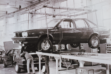 (上图:上海大众成立初期桑塔纳组装车间)
