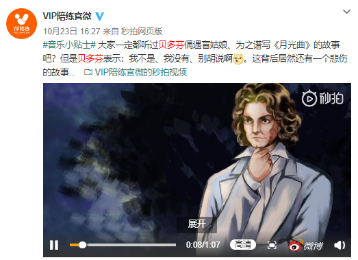 “VIP陪练”针对小琴童的认知特点,将冗长的音乐知识全部打散,变成2、3分钟的小动画故事或小影片,在APP、新浪官方微博@VIP陪练官微、今日头条号等渠道定期发布,通过短小精悍的文字、妙趣横生的动画,让孩子们在潜移默化中吸收到音乐知识。