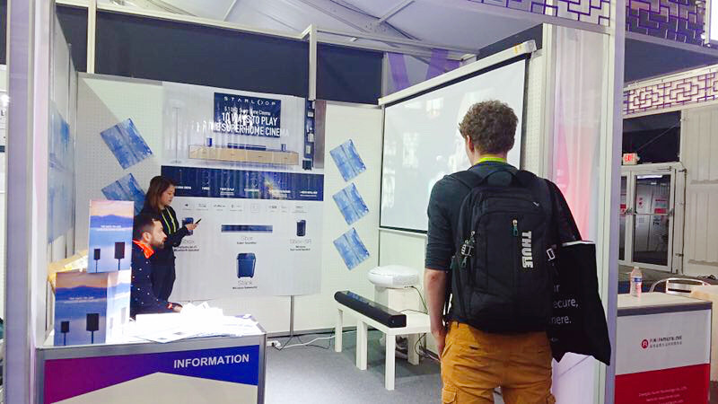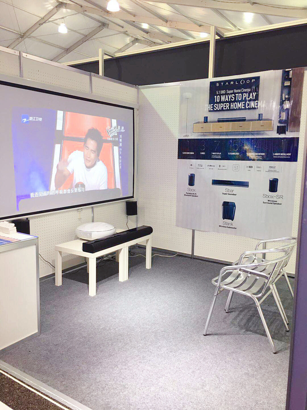 成都星环科技Starloop全新的X系列出现在展台上,这次带来的产品相对来说都是“轻量级”产品,以音箱为主,像我们熟悉的Sbox SR和Sbox Pro,还有Sbar智能回音壁和Stank超重低音,都在展示之列,供观众试听体验。