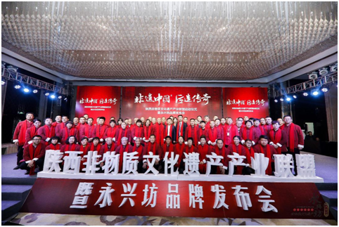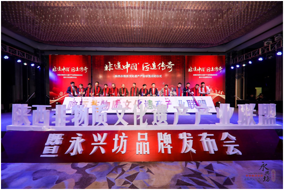 2019年1月19日,以“非遗中国 匠造传奇”为主题的陕西非物质文化遗产产业联盟启动仪式暨永兴坊品牌发布会在西安市索菲特人民大厦隆重举行。来自陕西省、西安市政府相关部门、非遗传承人、企业、社会性组织、新闻媒体及行业精英等三百余人共襄盛会。