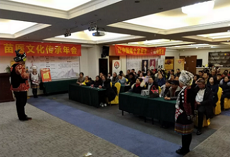 会议由贵州土苗医第十四代传承弟子闻小慧主持,寨有苗人敌不入,家有苗医疾病除,今天是个好日子,苗族自古以来有着隔空治疗,有着千年的民族医疗历史和秘方,随着闻老师的介绍,大家接着观看视频《我的师傅》。
