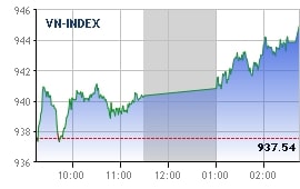 2月13日,早盘时越南指数处于窄幅震荡状态,但越到尾盘该指数越强劲反弹并即将接近950点大关。