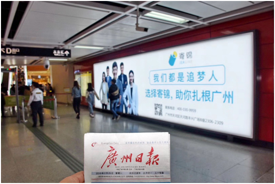 2019年3月初,寄锦教育的新广告登陆了广州地铁3号、4号线,仅用了11个字,就牵动了来往乘客的心——扎根广州、我们都是追梦人。