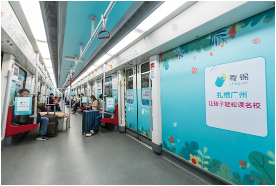 近期,寄锦教育承包了广州多条 “地铁线路”,用“幸福人生”、“扎根广州”、“只为一个梦”等戳心文案,收揽了无数广州追梦人的心。