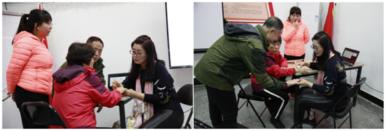 讲座结束后,为了让在座的居民们都能亲身体验全息刮痧法对疾病的超前诊断和防治,诺曼姿“家庭保健师”巾帼志愿团队的志愿者们为现场的居民们进行了辩证的全息手部检测和全息头部刮拭,以便及时发现自身体质的弱点和将要发生疾病的脏腑器官”及潜伏的病变。