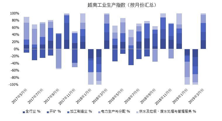 生产领域采购经理人指数(PMI):越南 PMI 指数从 2019 年 2 月的 51.2 点涨至 3 月份的 51.9 点,位列东盟第二。
