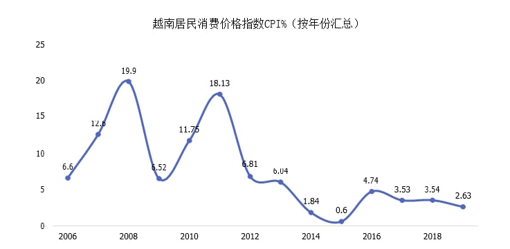 居民消费价格指数(CPI):2019 年第一季度越南 CPI 指数同比增长 2.63%,这是三年以来最低的增长率。2019 年第一季 度基本通胀平均同比增长 1.83%。