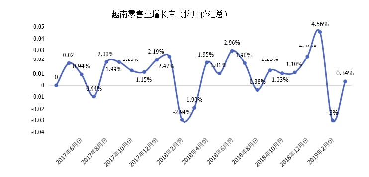 零售以及旅游总额:2019 年第一季度,如果排除 9%的价格因素,则商品零售业以及消费品服务业总额预计达 1184.9 万 亿越盾,同比增长 12%(2018 年增长了 8.9%)。