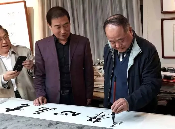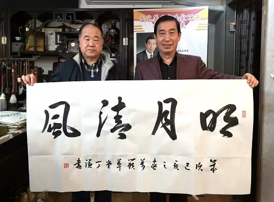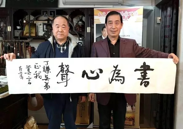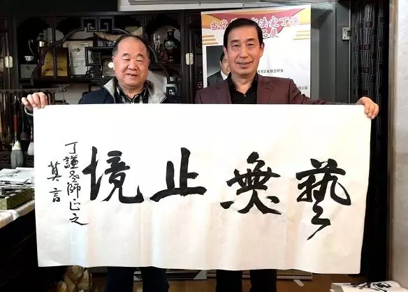 【盘古艺术网消息】2019年4月10日下午,诺贝尔文学奖获得者莫言先生及著名军旅作家王树增先生、王瑛女士、李骏先生,著名二胡演奏艺术家李祥章先生等一行莅临丁谦书法工作室参观指导。