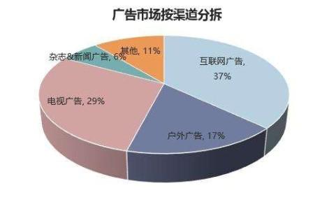 但在当下信息高速发达的互联网时代,新媒体的快速发展,不再集中于广播电视等传统媒体广告。互联与移动互联网的发展,大众接收信息的渠道越来越多样化。因此,广告在选择传播途径和方式也日趋多元化,并越来越向新媒体倾斜。据相关报告显示,互联网广告的覆盖率达到全部广告市场的37%并呈上升趋势。而其他传统媒介都成小幅度下滑趋势,
