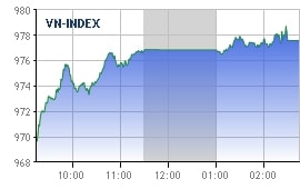 中小股板块:该板块今天也交易活跃,太平洋房地产基建发展股份公司 (PPI) 继续涨停至1240越盾/股,并挂单大量股票。午盘时,HVH、 HCD、KMR、 KSH等股票也站上涨停板块。FLC、HAG、 HSG、ITA等其他小盘股也收涨。