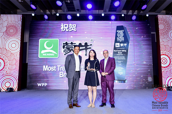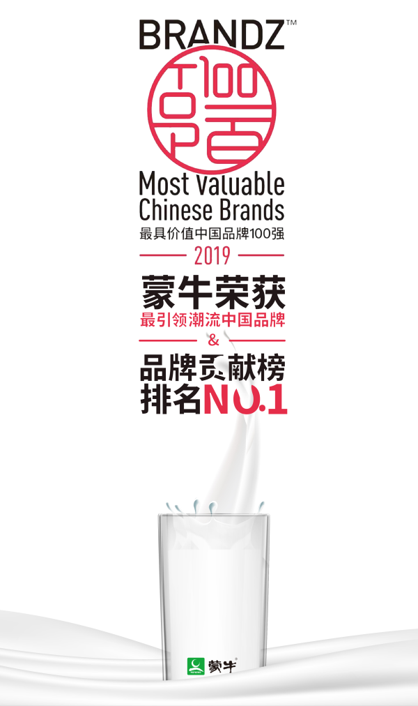 5月6日,2019年BrandZ™“最具价值中国品牌100强”发榜,蒙牛连续五年蝉联前100强,并且摘取了“最引领潮流中国品牌”(Most Trend-setting Brand)奖,这也是中国品牌首次荣膺该奖项。