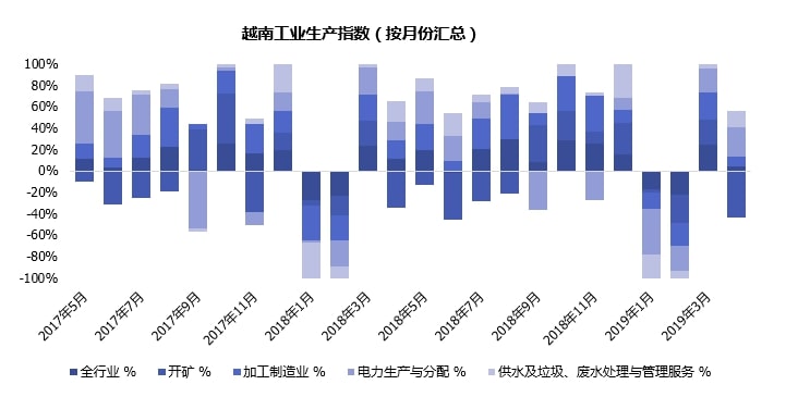 生产领域采购经理人指数(PMI):越南PMI指数从2019年3月的51.9点涨至4月份的52.5点,是自今年年初以来的最高记录,位列东盟第二。