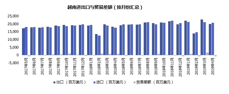 同时,4月份的出口量环比下降12.6%;4个月的增长率仅为5.8%,并开始出现贸易入超,使前4月的越南贸易顺差额仅剩7.11亿美元,而去年同期的这一数据为37亿美元。