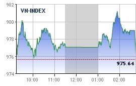 截至收盘,越南指数上涨0.05点,报975.69点,涨幅0.01%,成交1.7亿股,成交总额为3.85万亿越盾。河内指数下跌0.34点,报106.09点,跌幅0.32%,成交3045万股,成交总额为4308.4亿越盾。