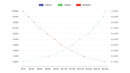 第一轮总量100万枚BDE,剩下每轮次共振资金池中BDE代币数量为上一轮总量的99%,衰减系数可设置为1%,每轮数量按此比例逐步递减。