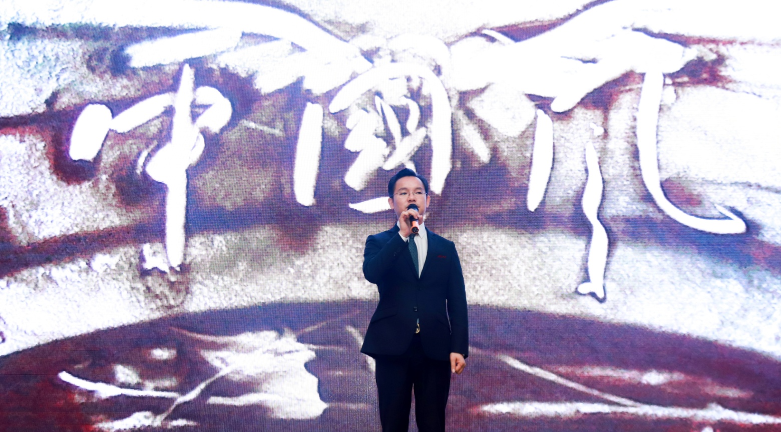 中国沙画创始人苏大宝现场表演作品《中国风》,并讲话