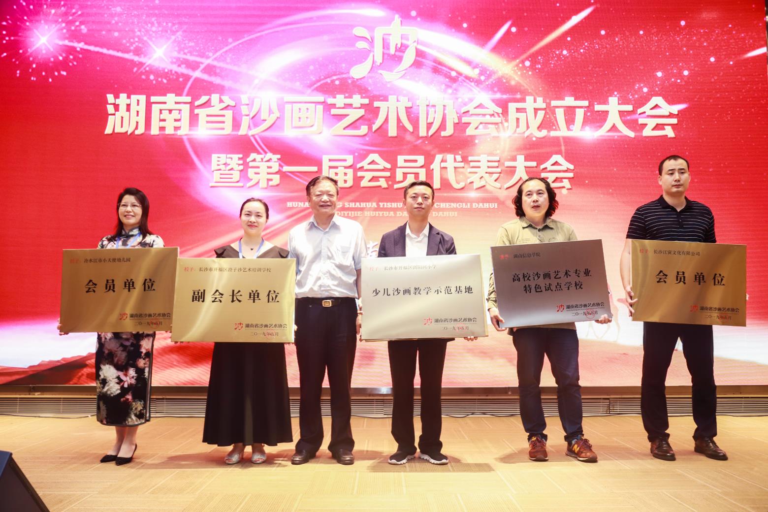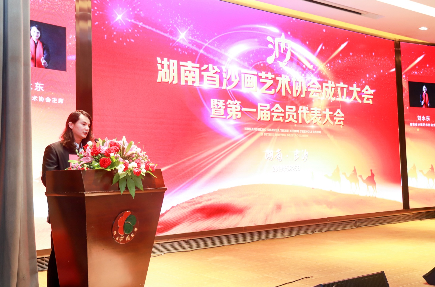 上午9:00,湖南省沙画艺术协会成立大会正式拉开帷幕。大会现场上演了沙画艺术展、开福区浏阳河小学学生集体沙画表演、沙画艺术讲座、沙画艺术高峰论坛研讨会等交流活动。湖南省教育厅原厅长、湖南省民办教育协会会长张放平为湖南信息学院(二本院校)颁发湖南省高校沙画艺术专业特色试点学校、为长沙市开福区浏阳河小学、冷水江市小天使幼儿园等单位颁发沙画教学示范单位、沙画艺术协会团体会员单位,新当选的湖南省沙画艺术协会主席刘永东为世界杂交水稻之父、中国工程院院士袁隆平赠送立体沙瓶画艺术作品。大会首先由湖南省民政厅社会组织管理局局长朱志明宣读民政厅关于成立湖南省沙画艺术协会的批复,中国著名相声表演艺术家、湖南省文联副主席、湖南省曲艺家协会主席大兵等领导分别讲话,会议审议表决并通过了《湖南省沙画艺术协会章程》以及投票通过会费标准,选举产生了协会第一届领导机构成员,刘永东当选为主席,贺春丽、李柏山、张菓航、陈萍、熊倩、邓善根当选副主席,贺春丽当选秘书长。