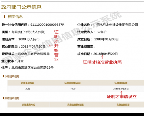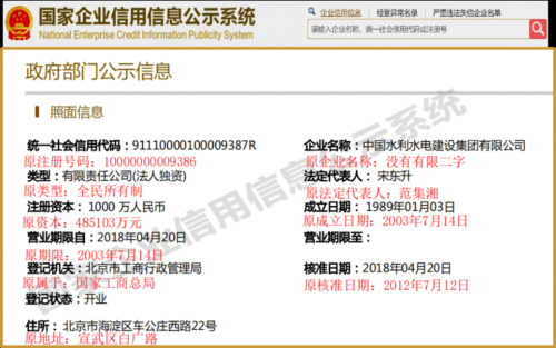 中国水电集团的企业基本信息与实际情况发生翻天覆地的变化,就连法律禁止变更的项目也发生了变更,且项目信息登记信息相互矛盾,却在工商公示信息当中却都没有变更任何痕迹,明显不符合法律规定。这表明中国水电集团的营业执照是虚假的。