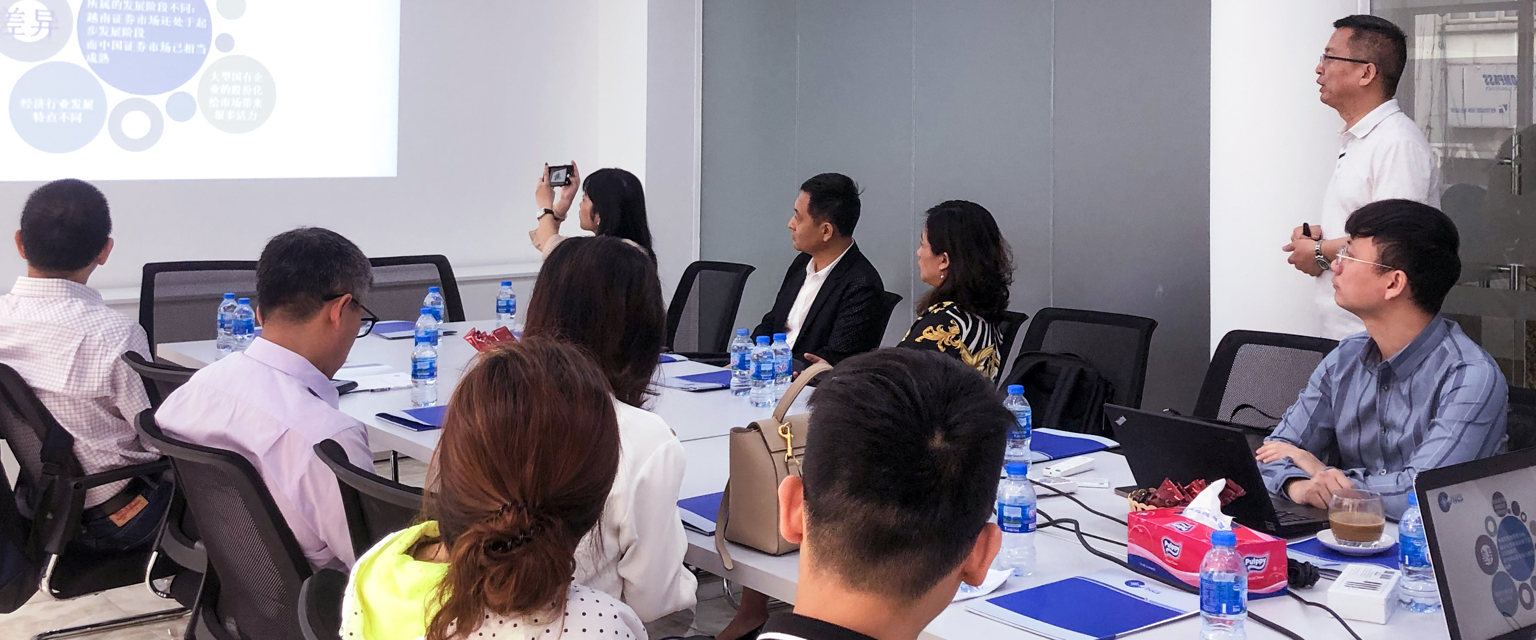 此次的考察之行,代表团选择越南建设证券作为了解越南证券市场的渠道,于29日上午参观胡志明交易所之后,下午便前往建设证券胡志明分公司参加介绍交流会,建设证券执行董事王卫亚向代表团详细介绍了越南宏观经济的现状和中越资本市场的对比,向各位代表展示了越南证券市场的巨大机遇,表明了参与越南证券市场的可行性。通过王卫亚董事的介绍和讲解,代表团对布局越南的落地也有了更明确地想法。