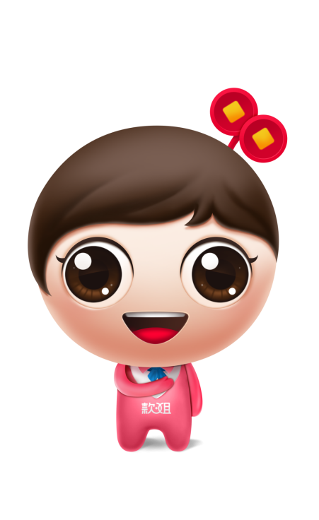 在本次的战略升级中,款姐顺势推出了她全新的品牌形象及IP卡通形象。新LOGO沿用了品牌的标志性红色,具有极高的辨识度,且设计简洁直观,将最能代表金钱符号的“铜钱”的最核心的“天圆地方”与字体笔画相结合,代表着款姐将用真挚良心的服务,联通资金方与客户,为其搭建良好沟通的桥梁。