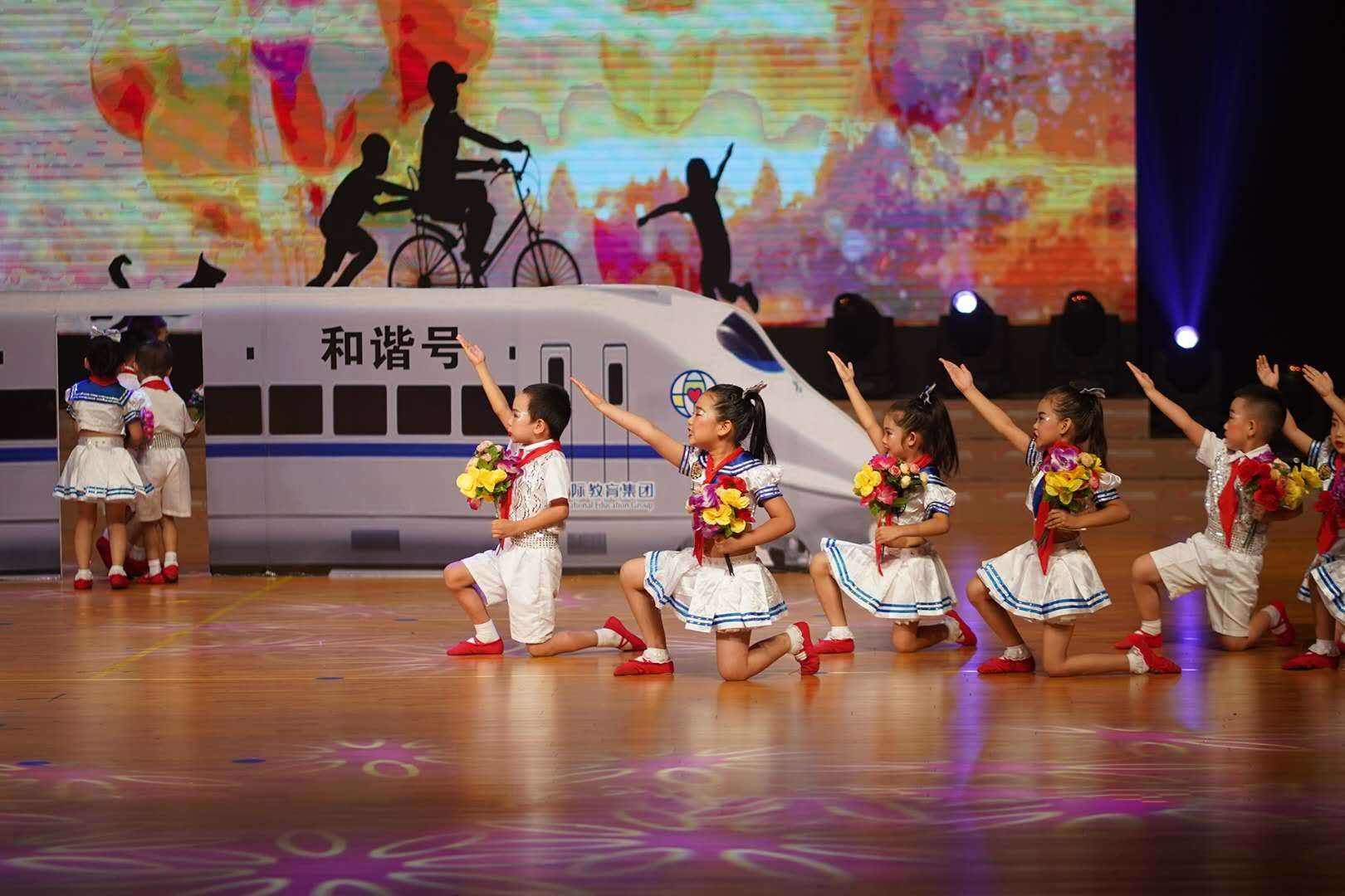 做教育是需要专业和情怀的,近些年来,他们一直在用“研究与创新”沉淀新时期幼儿教育的内涵与特色,在课程设置上,他们将艺术教育和主题探究融合在一起,将艺术渗透到环境、幼儿学习生活的方方面面,激发幼儿学习兴趣和热情。以该集团艺术总监、原空军蓝天幼儿艺术团长贾乃正为顾问的主创团队,用艺术的手段培养幼儿阳光般的心态,凭爱心与智慧丰润幼儿们幼小心灵,带领幼师们孜孜不倦、潜心研究、反复实践与论证,形成了一套系统的儿童艺术教育模式,让数以万计的儿童从小受到艺术教育启迪。党的十九大召开后,他又集大家智慧编排推出《金色的号角》三部曲,即《杨帆》、《逐浪》、《追梦》。从2018年推出《杨帆》主题演出后,以后每年一台,以“六•一”前后为演出季,今年演出季的主题为《逐浪》。