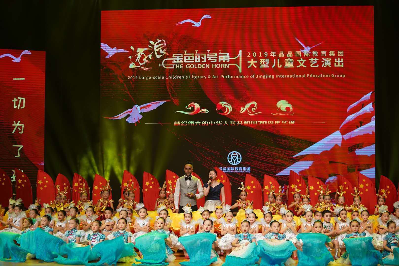 “扬起的号角闪烁金光,新时代强音响彻四方,亿万儿童心潮澎湃,中国——我心中永远的太阳!”今天晚上,能容纳1200多个席位的深圳青少年宫座无虚席,一场由深圳晶晶国际教育集团华中、华南两个发展区,近万名幼儿参与的庆祖国70华诞大型演出季落下了帷幕,这是开场歌舞《当号角响起》的情景。