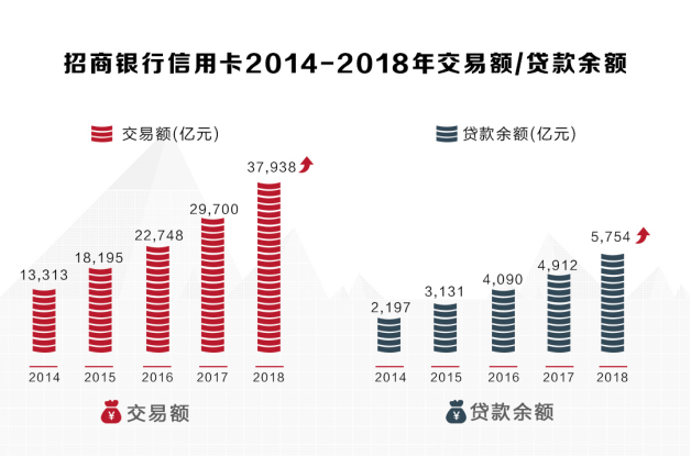在复杂的外部形势下,招行信用卡去年交出漂亮成绩单:据招行2018年报,招行信用卡流通卡数8430.44 万张,较上年末增长 34.98%;流通户数5802.93 万户,较上年末增长 23.61%。不仅流通卡数、流通户数增长迅速,交易额也再创新高,高达3.79万亿元,同比增长27.74%,位列同业第一。伴随交易规模高速增长,招行信用卡2018年贷款余额达5753.65 亿元,较上年末增长17.13%。