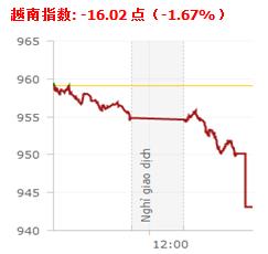 6月27日,越到尾盘时抛售压力越大,越南指数下跌16点至最低支撑位945点。截至收盘,越南指数下跌16.02点,报943.11点,跌幅1.67%,成交1.5903亿股,成交总额为3.5146万亿越盾。河内指数下跌0.99点,报102.96点,跌幅0.95%,成交3184万股,成交总额为3876.9亿越盾。