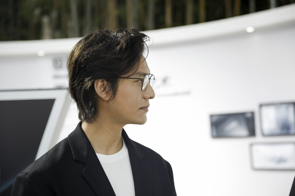 (陈坤身着时尚黑西装搭配清新白布鞋亮相发布会现场)