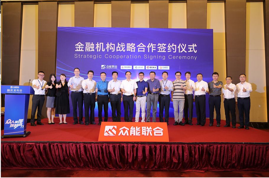众能联合创始人兼CEO 杨天利先生在发布会现场宣布:“众能联合在2019年4月份宣布完成源码资本领投、不惑创投跟投的B轮5000万美金股权融资以来,完成由五星控股领投的1.5亿人民币B+轮融资,累计B轮股权融资超过5亿人民币!同时,众能联合新获得了工商银行、招商银行、江苏银行、宁波银行、贵安恒信、华运金租等多家国内一线金融机构战略融资超过10亿人民币!” 发布会现场,众能联合与工商银行、招商银行、江苏银行、宁波银行四家金融机构签署了战略合作协议。