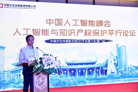 8月9日,由厦门市人民政府指导,文化和旅游部产业发展司、厦门市文化和旅游局、厦门市场监管局支持,中国文化传媒集团、福建省文化和旅游厅联合主办,中传悦众(北京)文化发展有限公司承办的中国人工智能峰会人工智能与知识产权保护平行论坛——中国文化传媒新文创(IP)平台(以下简称“中传新文创(IP)平台”)厦门推介会在厦门国际会议中心举行。中国文化传媒集团党委书记、董事长、《中国文化报》社社长刘强,公安部网络安全保卫局巡视员、副局长钟忠,福建省文化和旅游厅副厅长黄苇洲、厦门市文化和旅游局副局长傅国强、文化和旅游部产业发展司产业融合处田振以及来自伴乐谷、末那工作室、信实云、美美视界等文化企业代表100余人参加了推介会。