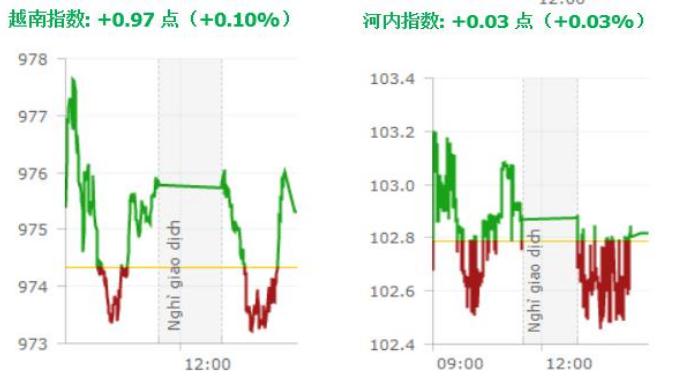 本周第一个交易日越南股市两市指数均出现窄幅波动,但尾盘时均已绿色(越南股市为上涨)收盘。