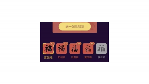 集卡类活动是指用户完成某项任务即可获得一张卡片,集齐所有卡片即可参与抽奖的活动。春节期间最多的就是集卡的活动,下图为支付宝集五福活动。