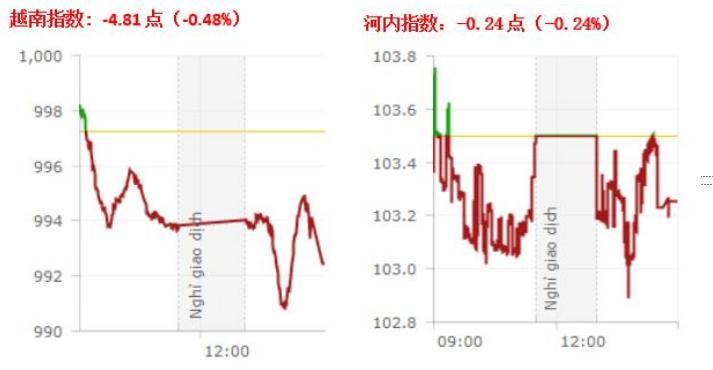 本周越南股市表现较为积极。两市指数在大部分时间均保持上涨趋势,越南指数甚至突破990点大关。截至收盘,越南指数上涨12.45点,报992.45点,涨幅1.27%,成交8.53亿股,成交总额为21.798万亿越盾。河内指数上涨0.9点,报103.25点,涨幅0.05%,成交1.28亿股,成交总额为1.771万亿越盾。