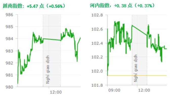 截至收盘,本周越南指数下跌8.39点,报984.06点,跌幅0.85%,成交8.1837亿股,成交总额为19.118万亿越盾。河内指数下跌0.93点,报102.32点,跌幅0.9%,成交1.1957亿股,成交总额为1.668亿越盾。