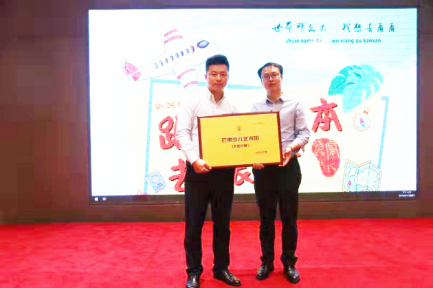 启动仪式由“欢动五洲·童心飞扬”品牌创始人 ,湖南广播电视台《跟着课本去旅行》制片人 ,芒果少儿艺术团团长郭海峰先生亲自为大连分团授牌。