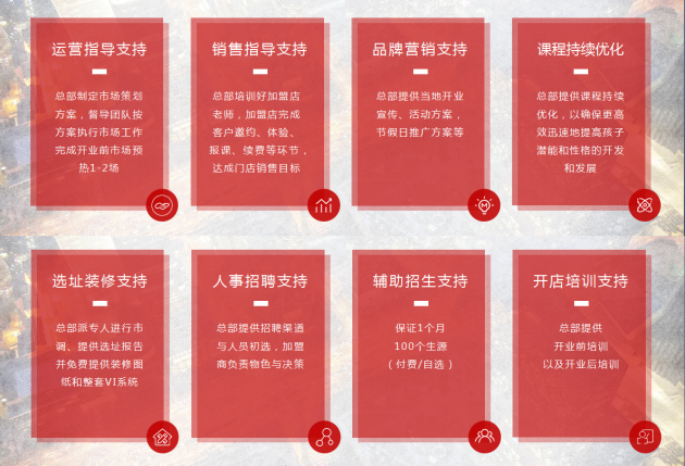 当下的创业者们,不仅要考虑加盟的产业是否能前途与情怀并存,更要考虑实际的商业经营模式是否可复制可持续。为此,帝宸星为加盟商制定了全新的四位一体的“管家式”的招商加盟模式,新的加盟模式帮助加盟商解决后顾之忧,总部会考虑到每一名加盟商的实际问题,360度全程帮助加盟商解决痛点难点。 首先,健全的课程体系是必须考虑的。戏剧表演作为帝宸星的核心课程是很多来帝宸星学生的第一选择,但帝宸星同样给予了孩子们更多的选择:少儿形体舞蹈班、少儿声乐演唱班、少儿形体模特班。如果家长们有特殊要求,帝宸星同样可以提供私人定制服务,满足孩子们的童星梦。