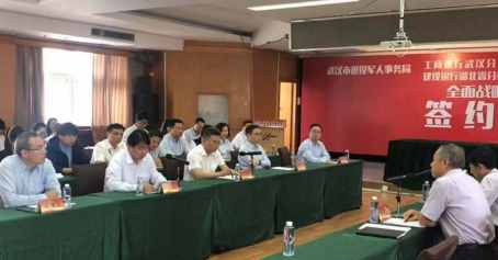 本次签约仪式由武汉市退役军人事务局副局长主持,武汉市退役军人事务局局长做重要讲话,本次多方战略合作协议的签署标志着武汉市退役军人事务局将联合社会力量、金融机构为庞大的退役军人群体提供更优质的、全方位的多元化服务。出席本次签约仪式的社会服务机构及金融机构代表有北京戎索信息科技有限公司 董事长 杨铭、中国工商银行武汉分行 行长 邱世杰、农业银行武汉分行 行长 顾城、中国银行湖北省分行 副行长 操凡、建设银行湖北省分行 副行长 周辉东、兴业银行武汉分行 行长 刘秉文,参会代表分别代表社会服务机构、金融机构发表了重要讲话,体现了政府部门及社会各界对于退役军人群体关注,同时也为更优质的、多元化的服务于这一特殊群体开启了新篇章,充分体现了社会各界愿意积极的参与到服务退役军人这个庞大的群体中来,让军人受到尊崇是最基本的,必须做好退役军人管理保障工作”。