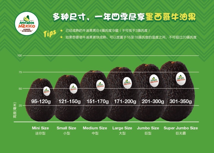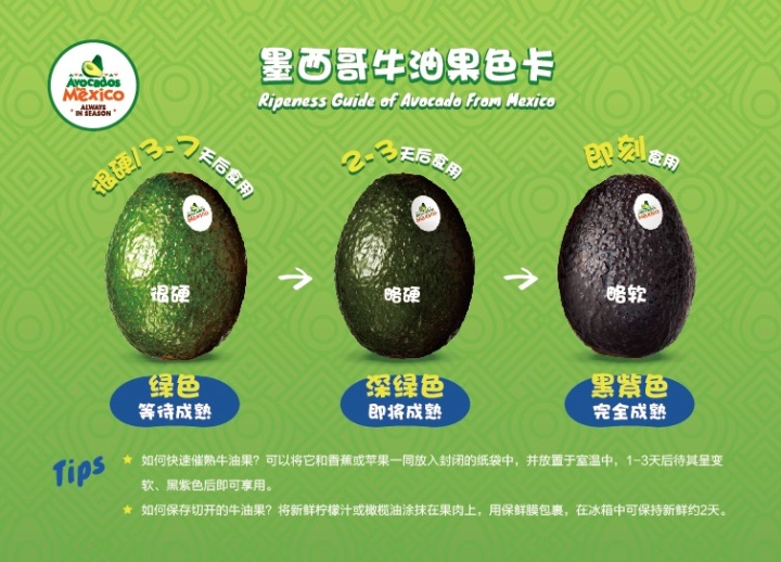 “我们种植世界第一颗牛油果!”墨西哥驻上海总领事Lorena Larios在发布会上讲述了牛油果对于墨西哥的重要性,独具技术优势和品质优势的牛油果是墨西哥的骄傲:“牛油果原产于墨西哥的繁茂大地,墨西哥是全球唯一一处牛油果树可每年天然开花四次的地方”。领事更现场展示,如何通过独特的牛油果色辨别墨西哥牛油果,并发布了相应的标准: