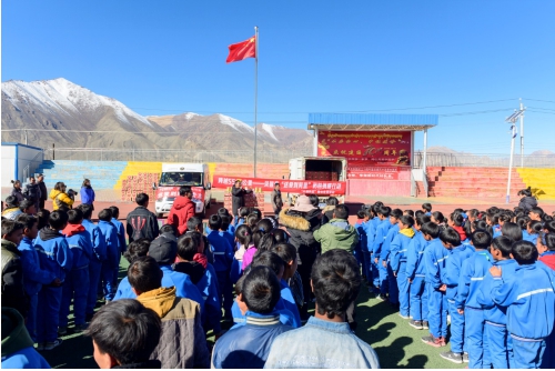 贝智康志愿者在当地领导及红十字会的协助下,紧锣密鼓地展开行动。先后在阿里地区两所小学里举行了捐赠仪式,为每一位到场的学生分发了贝智康的爱心奶粉。