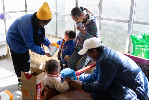 随后志愿者们前往村庄,通过入户走访,为贫困、留守儿童,送去了贝智康爱心奶粉。